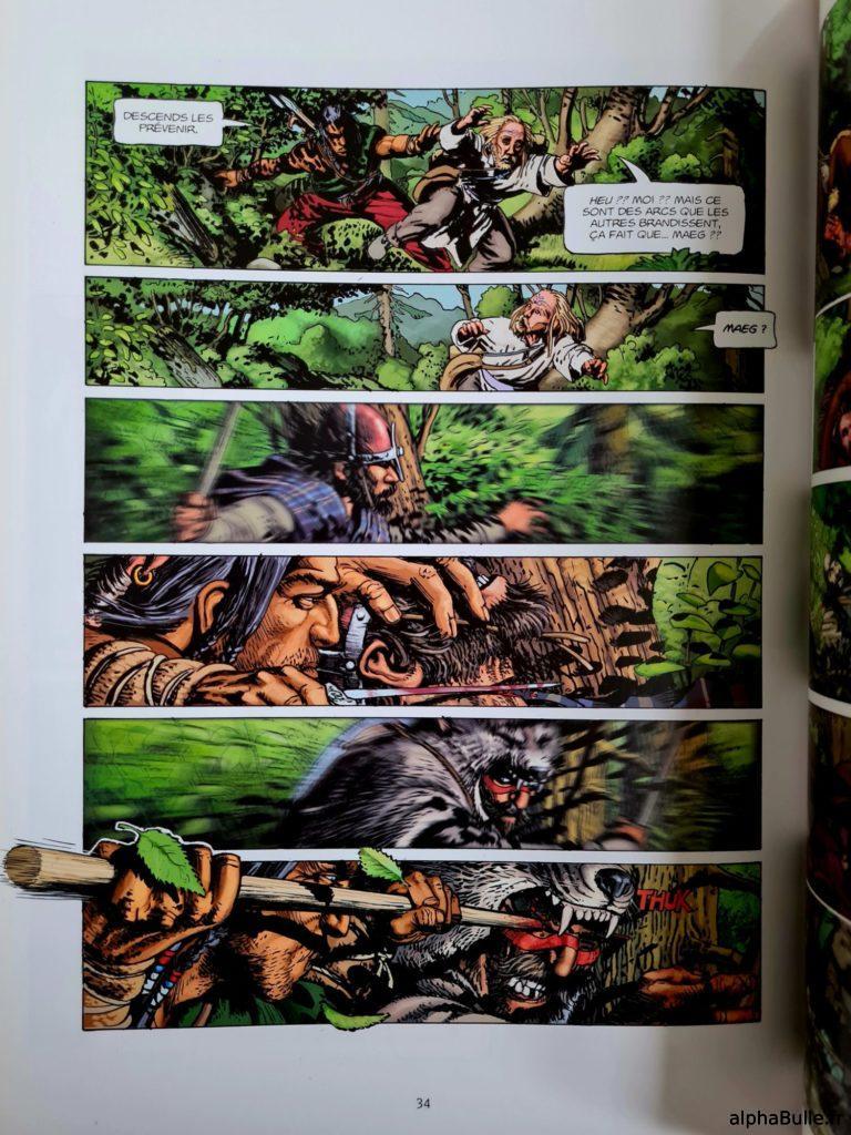 Peut-être ce synopsis vous semble-t-il un peu confus, ou avec de nombreux personnage…? C’est en effet bien le cas ! Car si cet album exploite avec originalité les mythologie bretonnes, celtes et gauloises, l’ensemble est très brouillon et assez indigeste. Les arcs scénaristiques se mélangent, d’abord lentement puis avec énormément de références et exposition dans la seconde partie. Les visions magiques et autres artifices (magie douce, ici) permettent de guider plus ou moins les personnages sans plus d’explication, et même la géographie (gauloise) est peu compréhensibles avec des voyages dont la durée est difficile à évaluer.