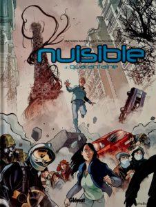 Comme je le craignais, c’est un final plutôt bancal pour une trilogie qui aurait pu être excellente, si le scénario ne s’embourbait pas dans ce troisième tome, avec un dénouement extrêmement simpliste, articulé par de grosses ficelles, et tentant de se cacher derrière des thèmes forts (foi vs science, rôle de l’Humain sur la planète…) et des concepts plutôt intéressants (la théorie de la « Reine Rouge » évoquée au tome précédent mais pas réutilisée ; ou la théorie des « gènes conscients » qui ne sera pas plus développée) bien que trés mal exploités. Reste un album qui nous fait quitter l’ambiance sombre et angoissante du thriller pour l’ambiance sombre et angoissante du post-apo. Sans être fondamentalement désagréable, l’on reste largement sur sa faim en refermant ce dernier tome, qui boucle son histoire sans subtilité 1, et oublie de revenir sur les trajectoires de ses personnages.