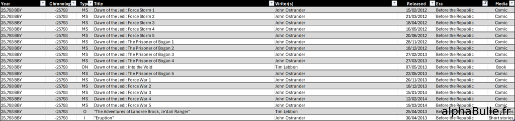 Dans la chronologie complexe de Star Wars, cette Genèse des Jedi est trés simple à placer : elle est au tout début de la chronologie ! En terme de romans ou comics, il n’existe rien avant, et rien après sinon la Légende des Jedi, déjà chroniquée sur le blog et qui se déroule la bagatelle de 20’000 ans plus tard.