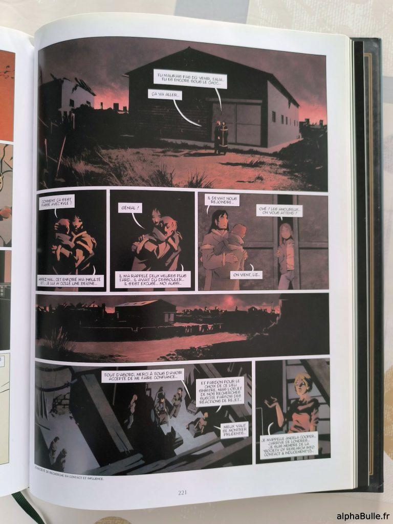 L’introduction de nouvelles factions, la Society of Research into Contact & Inducement et la Weltman Inc., enrichissent le lore1. Malheureusement, toute la séquence impliquant Angela (représentante de la première) se transforme en exposition lourde et artificielle. Les informations s’enchaînent sans subtilité, là où elles auraient largement gagné à être distillées progressivement dans les albums précédents.