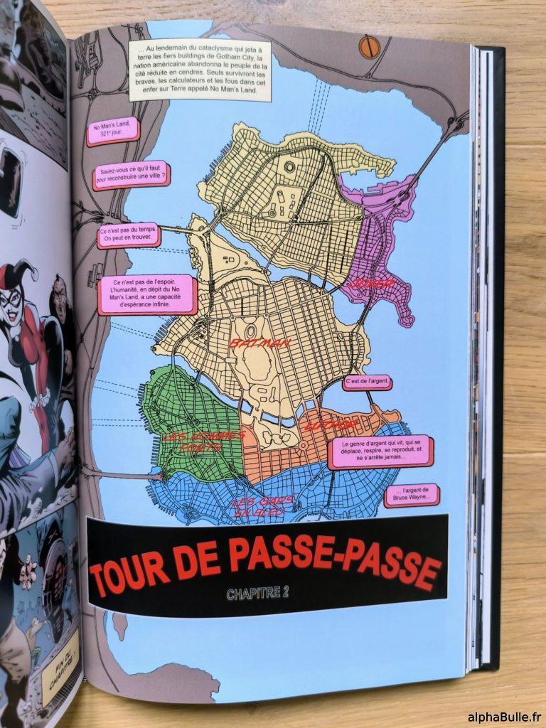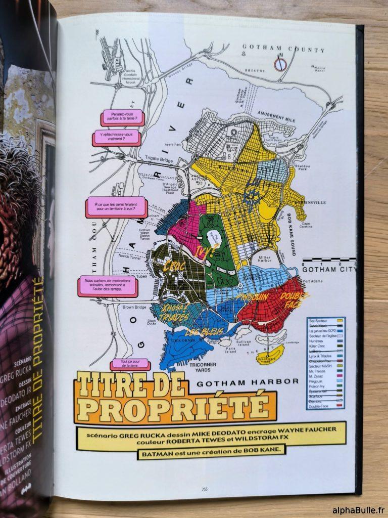 En fait, l’on devrait plutôt dire « des » cartes, car évidement, chaque auteur et chaque média a eu l’occasion de se l’approprier et de la modifier à sa guise. Toutefois, Gotham City a bien eu droit à une carte précise et cohérente, dessinée par Eliot R. Brown à l’occasion de… la saga No Man’s Land, précisément ! En effet, celle-ci fut réalisée afin de servir de « bible » à l’ensemble des créatifs qui participaient à l’évènement : elle permettait de localiser les environnements, les forces en présence, et les actions diverses en garantissant une unité de lieu.