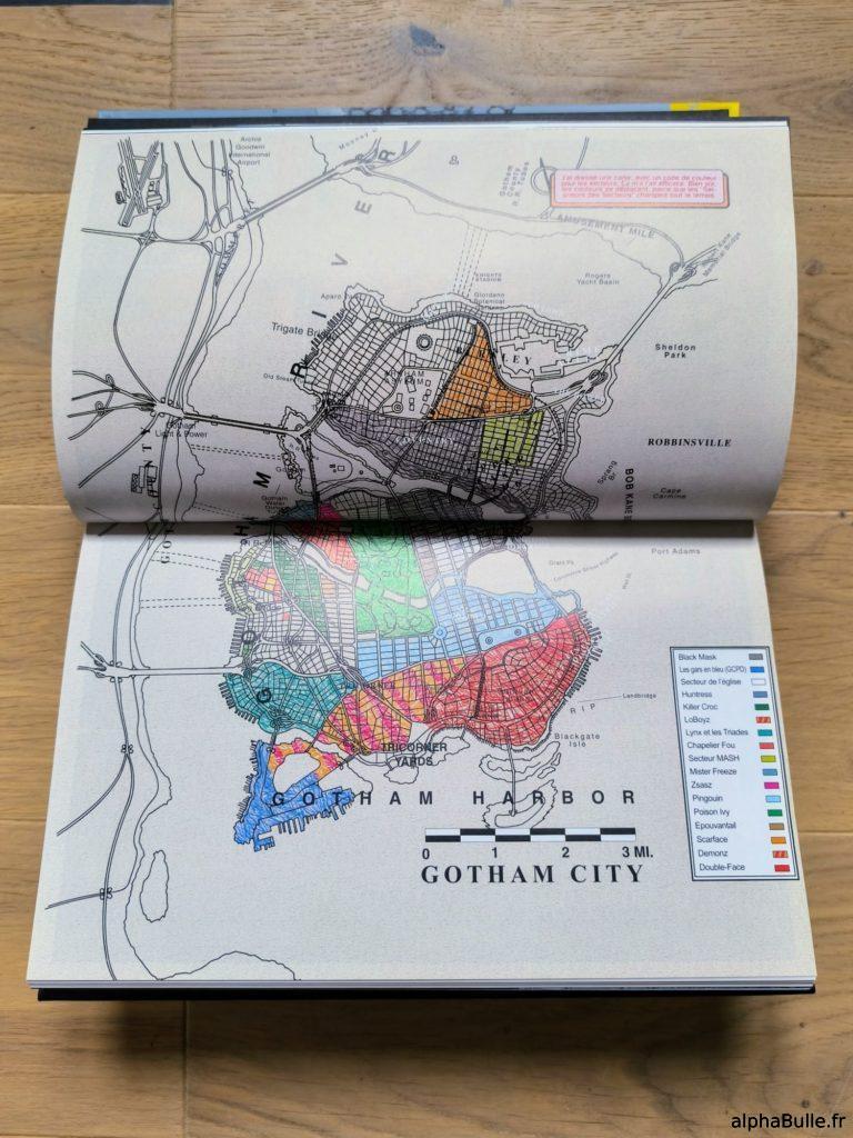 Aprés ce gigantesque cross over, la carte de Brown est devenue canon, et l’on situe souvent Gotham City dans l’état du New Jersey, non loin de Métropolis. S’inspirant largement de Manhattan, Gotham est donc une cité s’étalant sur quatre grandes îles (et de multiples plus petites). Elle est dotée de parcs, de quartier chics, de zones résidentielles, de docks, de quartier d’affaire, mais aussi de quartiers pauvres (les Narrows) et d’un China Town. On y trouve des sites marquants tels que ACE Chemical2, la Tour Wayne, le pénitencier de Black Gate et bien sûr l’asile d’Arkham !