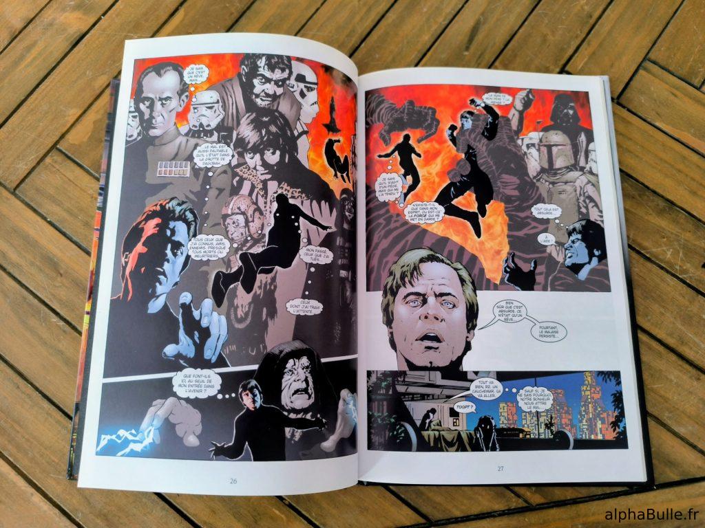 Les compositions, quant à elles, nous offre plusieurs moments de bravoure (en particulier les cauchemars de Luke et Mara) ainsi que plusieurs pages et doubles-pages audacieuses. Les auteurs jouent également avec les blancs narratifs. Les découpages sont également soignés, avec des jeux de lumières dans certaines vignettes simplement magnifiques.
