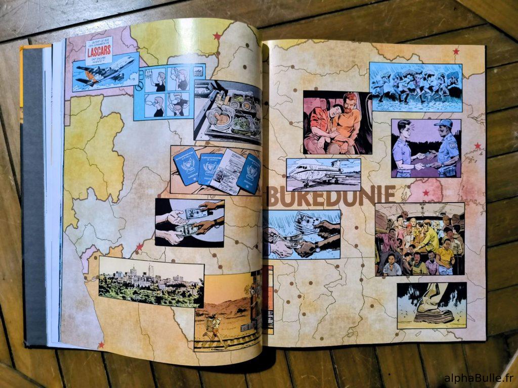 Graphiquement, l’album se distingue par un style nerveux et audacieux. Certaines trouvailles de mise en scène, comme cette discussion en ghosting entre Leonard et sa sœur (image ci-contre), inversent les codes habituels et renforcent l’émotion1. Les paysages africains, magnifiés par une colorisation chaleureuse, contrastent avec l’ambiance de plus en plus violente et crépusculaire du récit. Le charadesign trouve un équilibre pertinent entre costumes iconiques et tenues usées, reflet de l’état d’esprit des personnages.