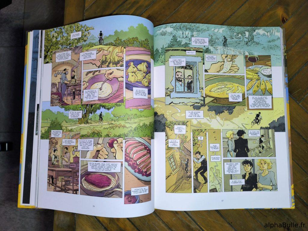 Trois recettes apparaissent (plus ou moins discrètement) dans l’album et illustrent la philosophie culinaire : la terrine de lapin de titane, les œufs en meurette et le poulet aux écrevisses (que je compte bien essayer !). Les recettes détaillées de ces plats sont proposées par les auteurs en guise de postface de l’album.